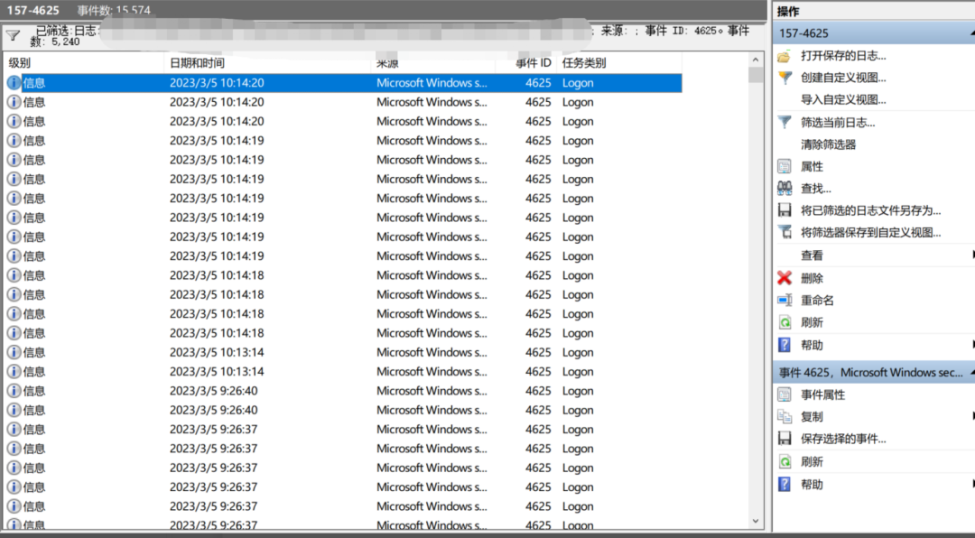 只筛选4625的源IP地址,获取所有对本机进行爆破的机器,去重重复项后,后期直接排查这些机器即可。